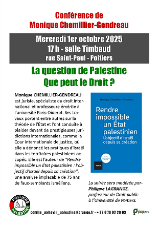 Conférence Poitiers Palestine - 1er octobre salle Timbaud 17h00
