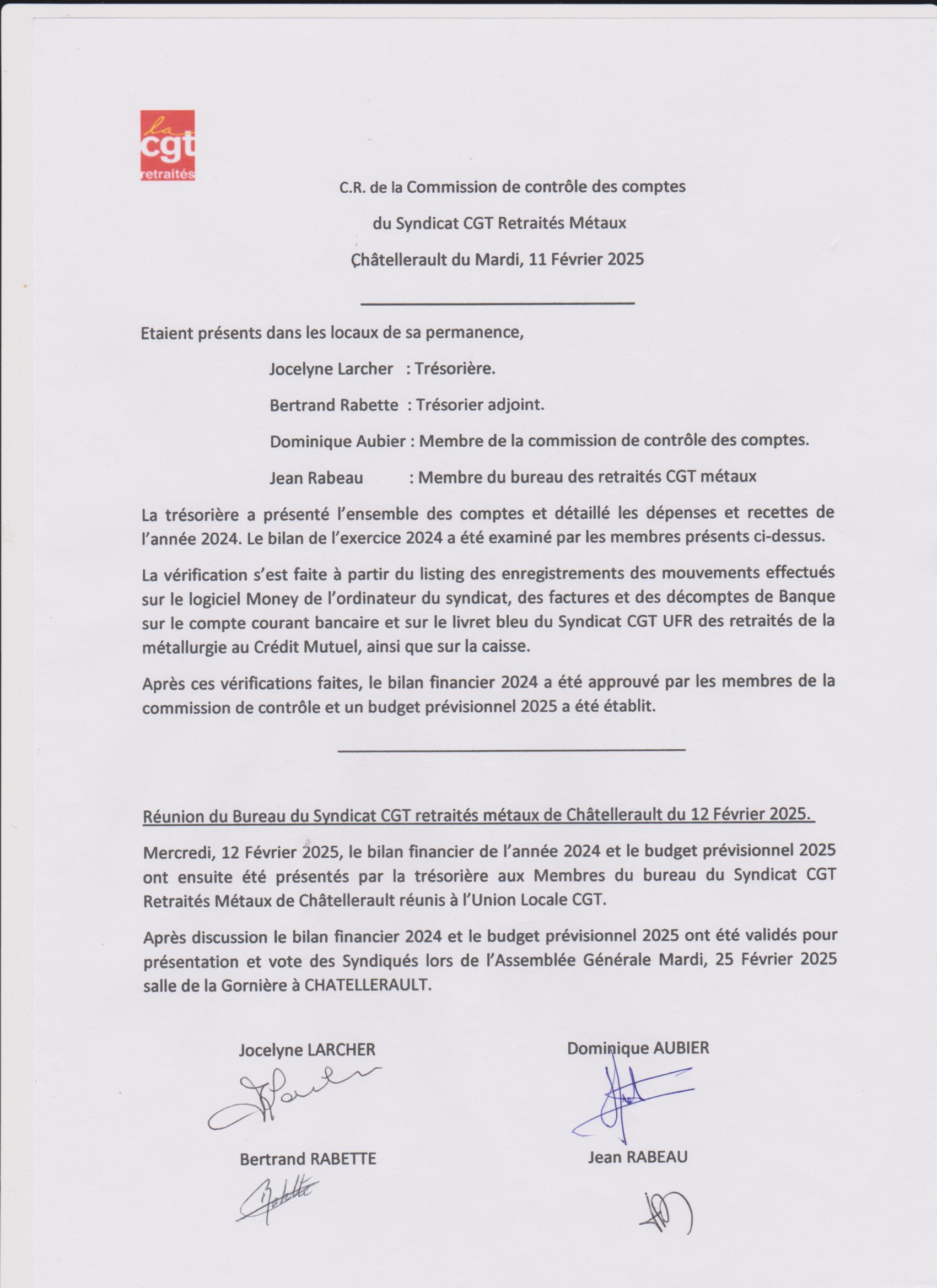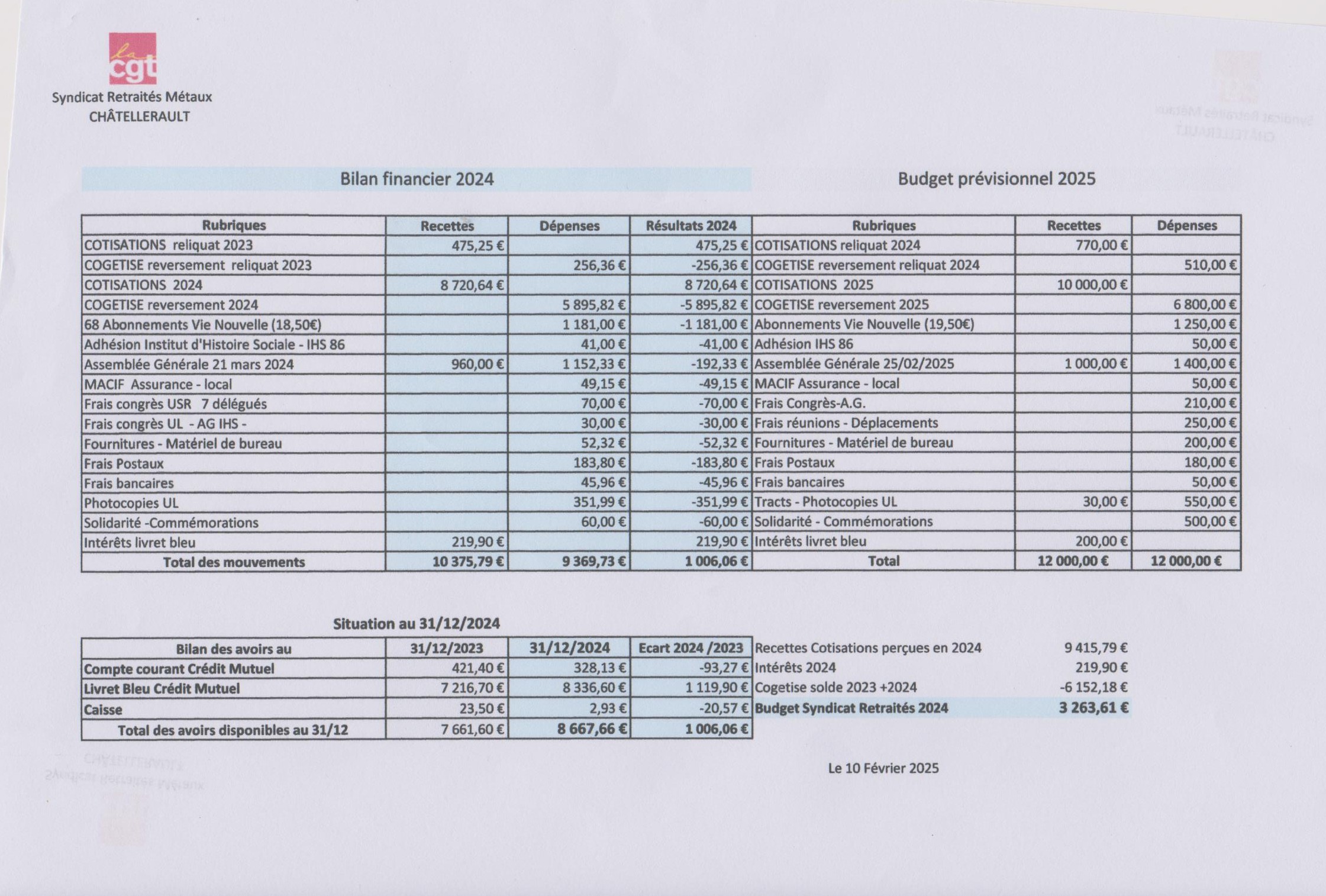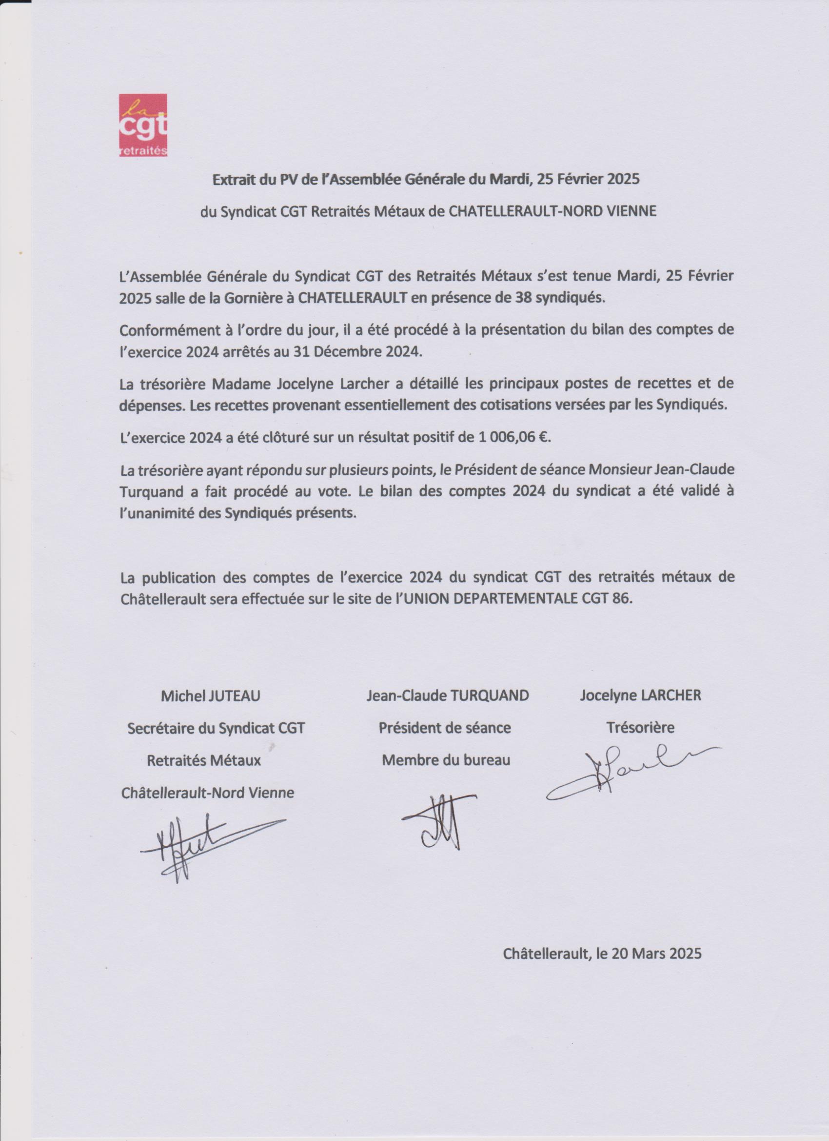 Vous trouverez en pièce jointe les comptes et compte rendu pour 2024.